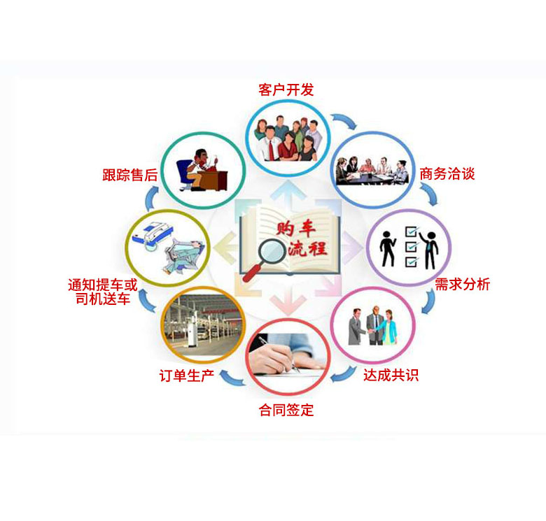 | 2、購(gòu)車流程: | 1、咨詢洽談(電話洽談或來(lái)廠考察洽談) 2、簽訂汽車購(gòu)銷合同(傳真、郵遞或者來(lái)廠簽訂) 3、我廠按時(shí)按質(zhì)生產(chǎn) 4、交付驗(yàn)收 >>點(diǎn)擊查看詳細(xì)內(nèi)容 |