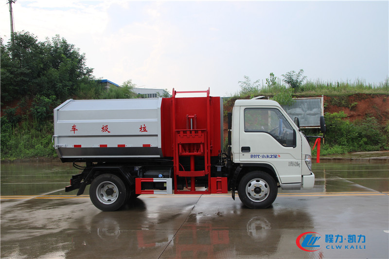 掛桶垃圾車(chē)又名自裝卸式垃圾車(chē), 由密封式垃圾廂、液壓系統(tǒng)、操作系統(tǒng)組成。舉升油制缸垃圾廂可自吊上放下,上下一次工作循環(huán)時(shí)間≤50s。一輛車(chē)可配幾十個(gè)垃圾桶,實(shí)現(xiàn)一臺(tái)車(chē)與多個(gè)垃圾桶聯(lián)合作業(yè),循環(huán)運(yùn)輸,充分提高了車(chē)輛的運(yùn)輸能力,特別適用于短途運(yùn)輸,如環(huán)衛(wèi)部門(mén)對(duì)城鎮(zhèn)垃圾的清理、運(yùn)輸?shù)?/span>。