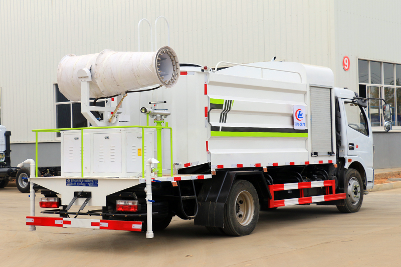 噴霧降塵車,抑塵效果約為普通灑水車的30倍,一臺(tái)噴霧降塵車的工作直徑可覆蓋4個(gè)標(biāo)準(zhǔn)足球場(chǎng)。水箱中的水經(jīng)過(guò)霧化后,由高壓風(fēng)機(jī)噴出,水霧顆粒極為細(xì)小,達(dá)到了微米級(jí),其吸附力也增加了3倍,耗水量卻降低了70%,遭遇霧霾天氣、空氣質(zhì)量PM2.5嚴(yán)重超標(biāo)時(shí),進(jìn)行液霧降塵、可分解淡化空氣中的顆粒濃度、將飄浮在空氣中的污染顆粒物、塵埃等迅速逼降地面,達(dá)到清潔凈化空氣的效果。