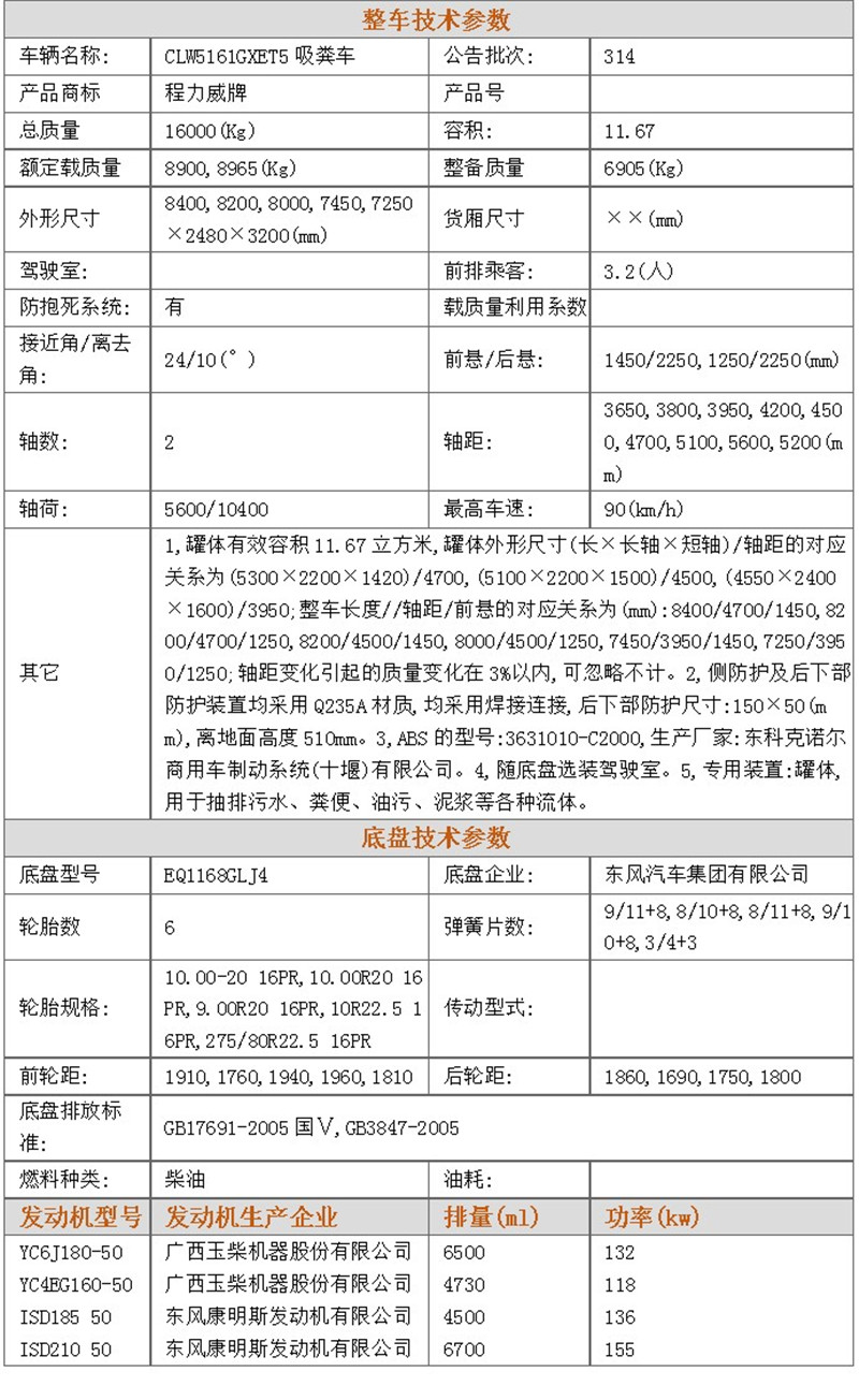 東風(fēng)多利卡D9吸糞車是一款采用東風(fēng)多利卡D9系列駕駛室底盤改裝的大容積吸糞車,罐體容積12立方米,主要為城鄉(xiāng)環(huán)衛(wèi)部門抽吸和運(yùn)送糞便及其它污水。適用于抽吸糞便,污水、污泥漿和混有較小懸浮雜物的液體,適用于市政環(huán)衛(wèi)、大中小型工礦企業(yè),小區(qū)、學(xué)校,化糞池清理轉(zhuǎn)運(yùn),城市管道清理疏通,工廠沼液沼渣清理等。