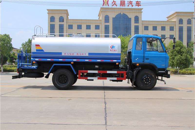 改裝配置:罐體采用4MM厚武鋼專用容積板制作,容積12立方,灑水車前沖(噴)后灑,帶側(cè)噴,罐體后帶工作平臺(tái),平臺(tái)上安裝綠化灑水炮,灑水炮可全方位旋轉(zhuǎn),可連續(xù)調(diào)成直沖狀、大雨、小雨、毛毛雨,帶安全護(hù)欄,配備全國質(zhì)量評(píng)比第一名的大功率專用灑水泵,泵可自吸自排,安裝過濾網(wǎng),帶消防接口,可通過消防栓進(jìn)水,帶自流閥,隨車選裝20米綠化卷盤,可噴灑農(nóng)藥。用戶可選裝消防大功率消防水泵、應(yīng)急時(shí)可做消防灑水車使用。