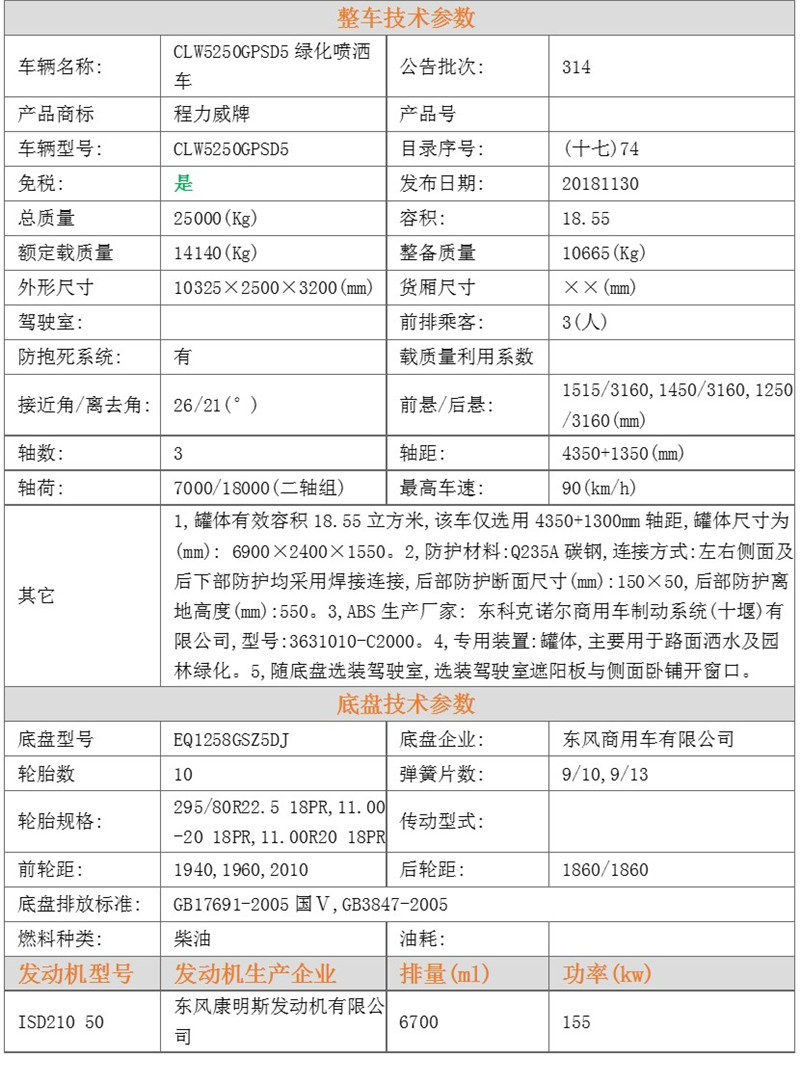 由發(fā)動機帶動變速箱,變速箱上安裝的取力器帶動灑水泵,灑水泵產生主要動力,將罐體內部的液體通過管網噴灑出去。自吸高度:≤7m,灑水寬度:≥20m,最大射程:≥28m;可調節(jié)成柱狀,射程≥28m;也可調節(jié)成霧狀,射程≥5m。