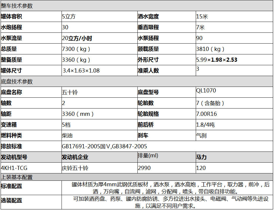 | ★歡迎來電咨詢更 多 慶鈴五十鈴5噸灑水車 聯(lián)系電話: 18372218088 | |