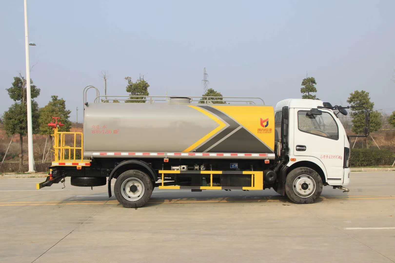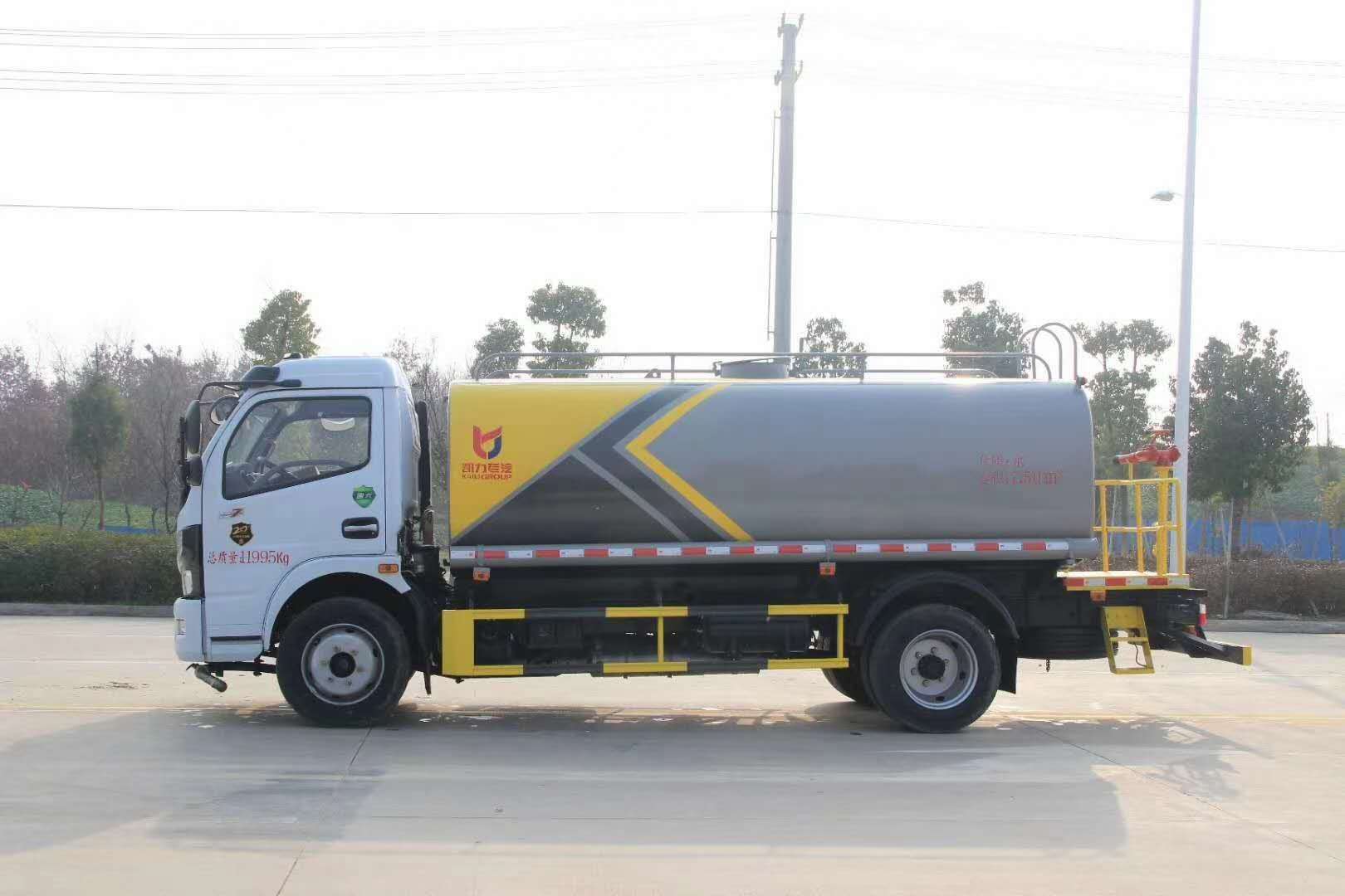 前噴后灑,前裝有鴨形噴嘴或圓頭沖嘴,后面裝有圓柱開灑水噴嘴或蓮蓬頭噴嘴,后部有一工作平臺(tái),裝配有高壓水炮。后部還可裝8個(gè)噴嘴(選裝)噴水器一般用于沖洗街道。